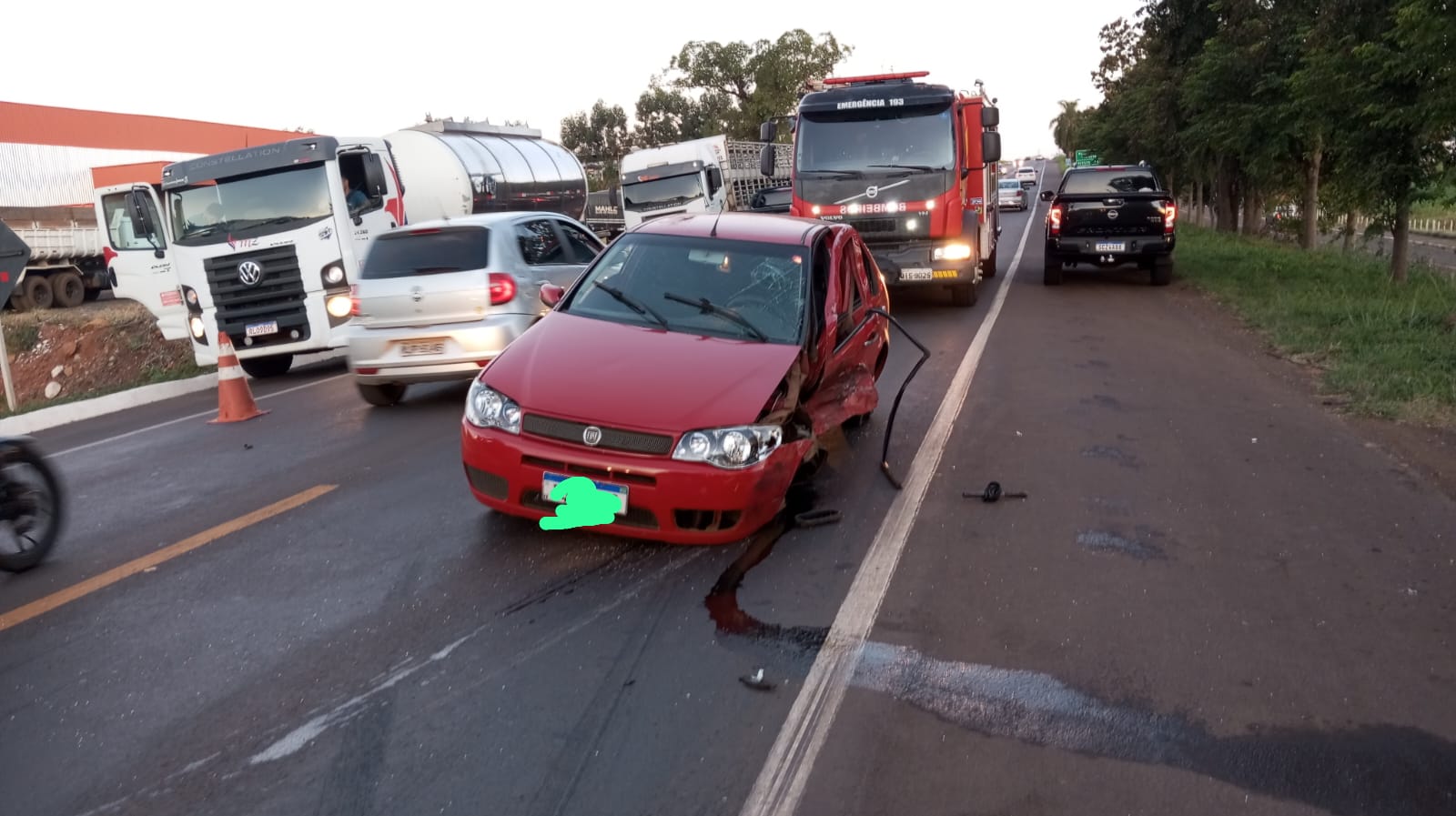 Um acidente de trânsito envolvendo três veículos foi registrado na tarde de domingo (19), por volta das 17h47min, na BR-282, nas proximidades do trevo Leste, no Distrito Industrial Oeste, em Pinhalzinho.