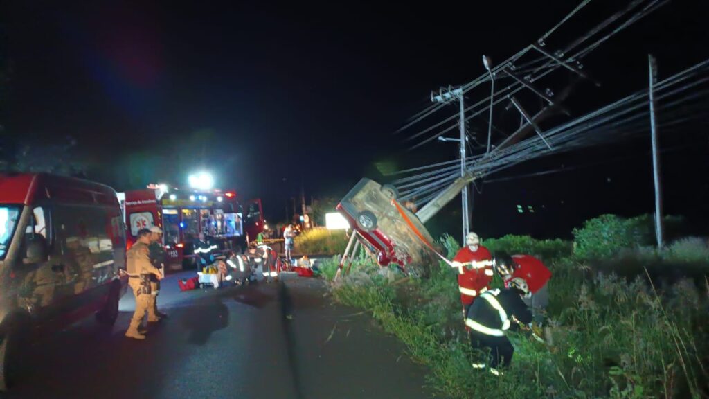 Na noite de terça-feira (04), um grave acidente de trânsito foi registrado na SC-283, nas proximidades do bairro Natureza, em Concórdia. Um veículo VW/Voyage, que seguia no sentido centro/bairro, colidiu violentamente contra um poste de energia, causando danos de grande monta e resultando na morte de um dos passageiros.