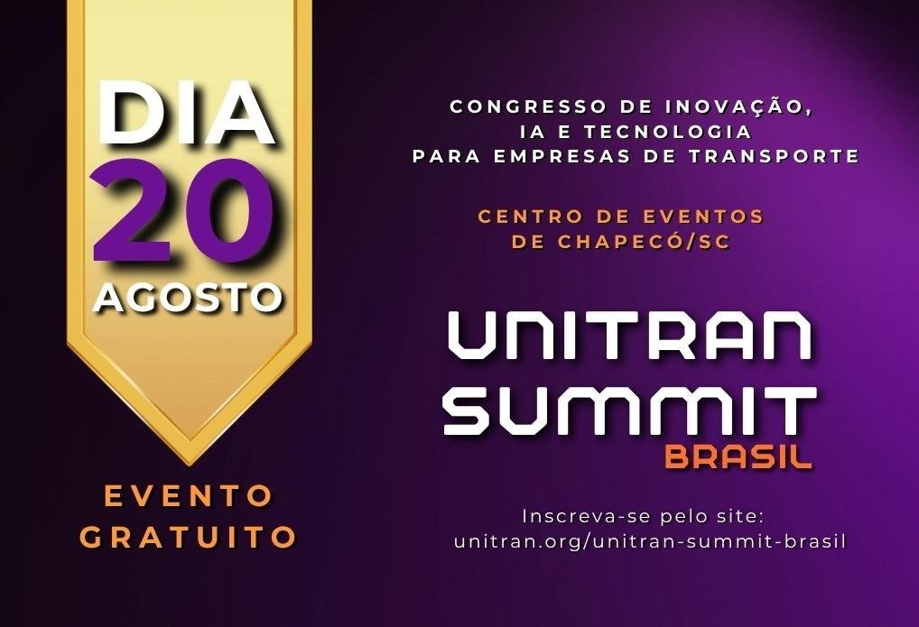 Com formato inédito no Brasil, o Unitran Summit se destaca por ser o primeiro grande evento focado exclusivamente na transformação digital do transporte. Tem a chancela de entidades representativas como o Sitran, a Federação das Empresas de Transporte de Carga e Logística de Santa Catarina (Fetrancesc), a Associação Catarinense de Tecnologia (Acate) e a Prefeitura Municipal de Chapecó. Com organização da TRC Vision, sua realização será no Centro de Cultura e Eventos Plínio Arlindo De Nes, com início às 9h e previsão de encerramento às 20h30.