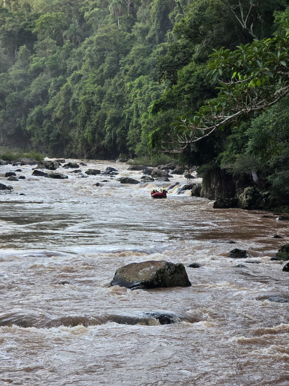 Durante o deslocamento, a equipe enfrentou elevada complexidade técnica, principalmente devido à presença de quedas d’água ao longo do trajeto, o que dificultou a navegação. O plano inicial previa uma varredura de aproximadamente nove quilômetros. No entanto, em um remanso localizado antes da última queda d’água que antecede a PCH Salto Voltão, os bombeiros identificaram um forte odor, o que motivou a interrupção do percurso para uma busca mais detalhada no local.
