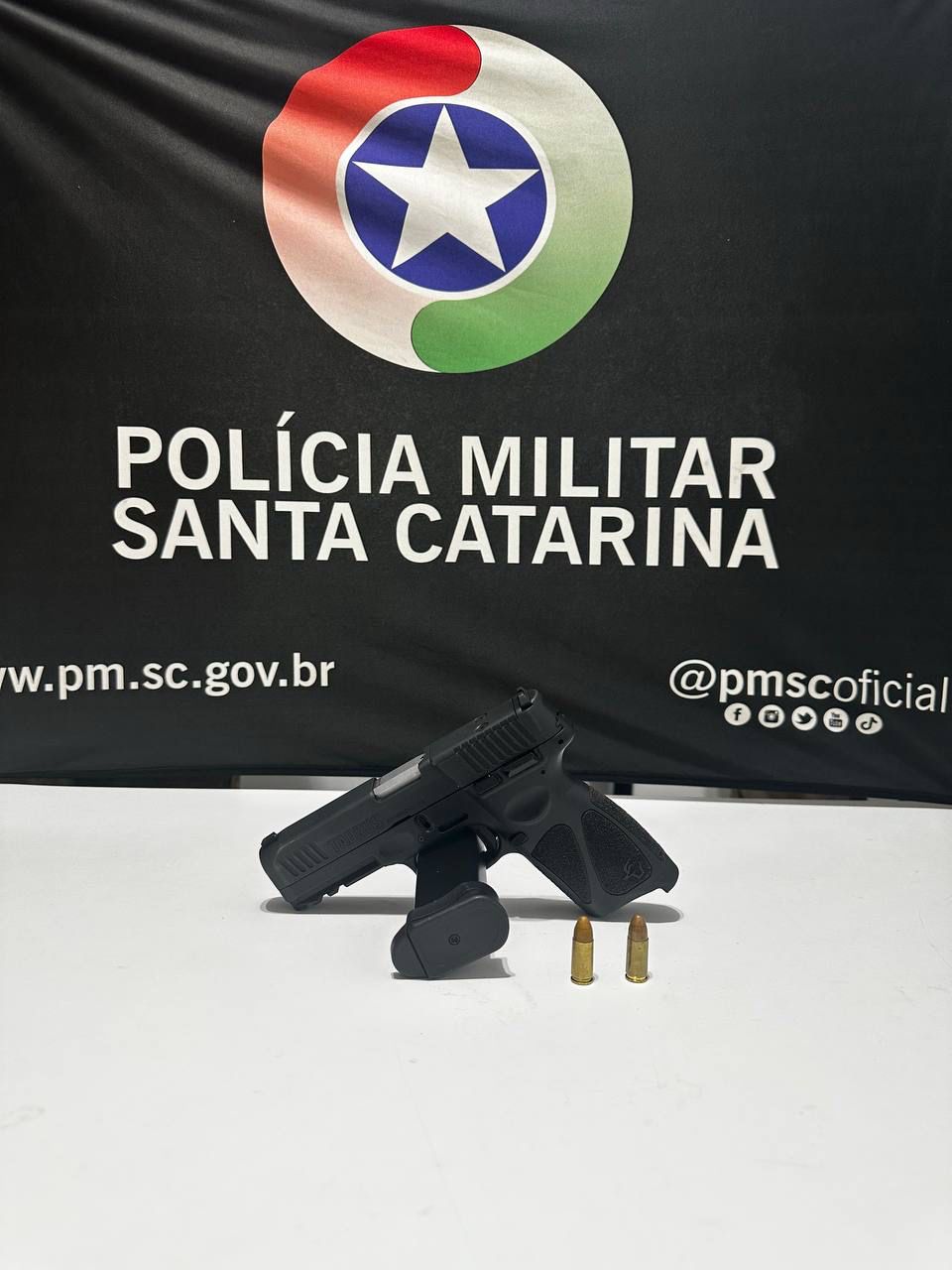 Durante a abordagem, o morador autorizou a entrada da guarnição. Em buscas pessoal e na residência, nada de ilícito foi encontrado com o suspeito. No entanto, ao verificar a área externa, os policiais localizaram uma pistola calibre 9mm, da marca Taurus, escondida dentro de uma centrífuga de roupas na garagem. A arma estava carregada, com duas munições no carregador.