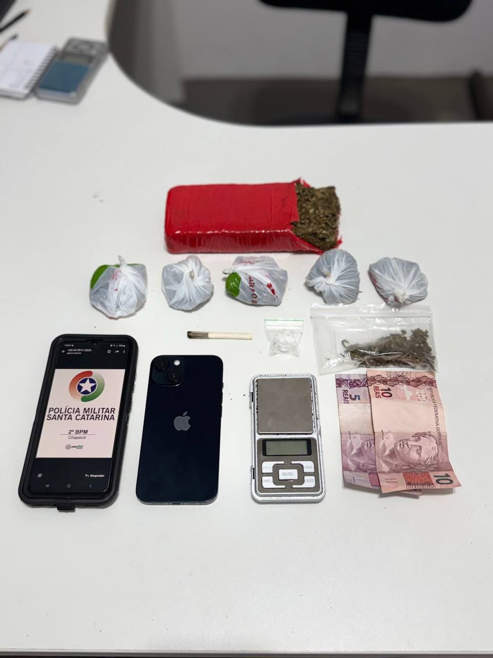 Ao todo, a polícia apreendeu aproximadamente 449 gramas de maconha, 3,9 gramas de cocaína, além de dinheiro e um celular. Outras guarnições prestaram apoio para garantir a segurança do local. O suspeito e o material apreendido foram encaminhados para os procedimentos legais.