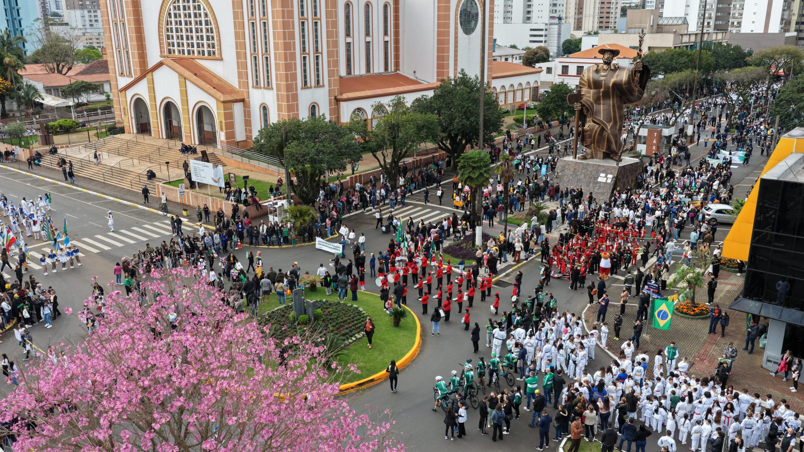 Durante a cerimônia, a secretária de Educação, Astrit Tozzo, destacou que o ato reforça tanto o patriotismo quanto o trabalho das escolas, que atendem cerca de 30 mil alunos. O prefeito João Rodrigues ressaltou que a construção de um Brasil melhor começa na cidade e na família, enquanto o comandante da 4ª Região da Polícia Militar de Fronteira, coronel Jorge Luiz Haack, enfatizou o respeito ao território. Entre os destaques do desfile esteve a atleta Camile Basso, da Ginástica Rítmica de Chapecó, que apresentou suas medalhas conquistadas em competições estaduais e regionais. O evento começou às 8h e terminou por volta das 10h.