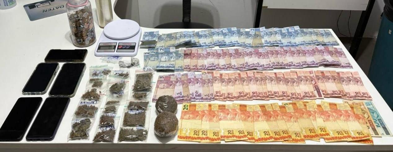 Também foram recolhidos cinco celulares e R$ 1.250,00 em dinheiro. O Canil da Polícia Militar foi acionado para apoio, mas nenhum outro material ilegal foi encontrado. O casal foi encaminhado à Central de Plantão Policial para os procedimentos legais, sem a necessidade de uso de algemas.