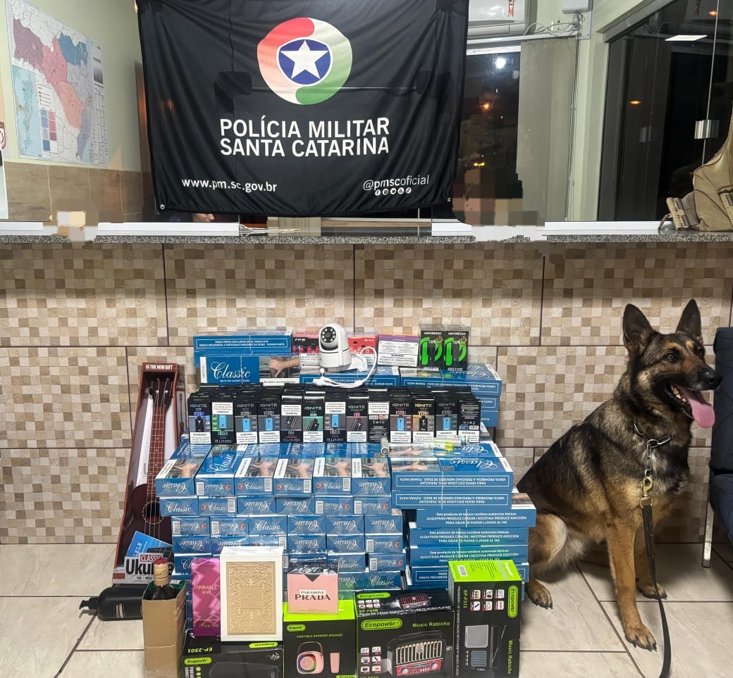 Na noite da última quarta-feira (20), por volta das 21h30min, a Polícia Militar Rodoviária de Santa Catarina apreendeu uma grande quantidade de produtos de contrabando durante fiscalização na SC-155, em Bom Jesus/SC.