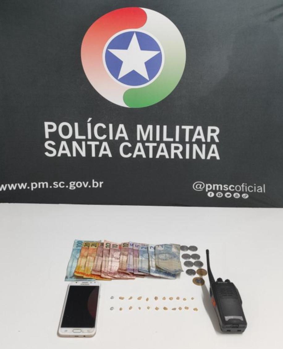 De acordo com a PM, durante abordagem os policiais localizaram cerca de 33 gramas de crack, já fracionadas em pedras prontas para venda. Também foram apreendidos um aparelho celular, um rádio comunicador portátil e a quantia de R$ 200,75 em dinheiro, que possivelmente seria proveniente da venda de drogas.