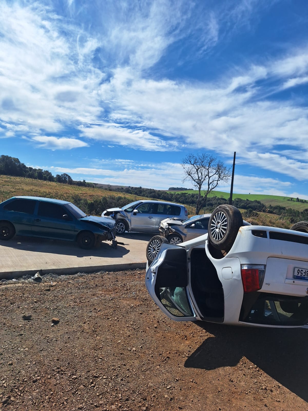 Segundo a Polícia Militar Rodoviária, quatro veículos seguiam no mesmo sentido quando o primeiro carro freou para evitar uma colisão frontal. Na sequência, houve batidas em cadeia: um dos veículos saiu da pista e capotou.