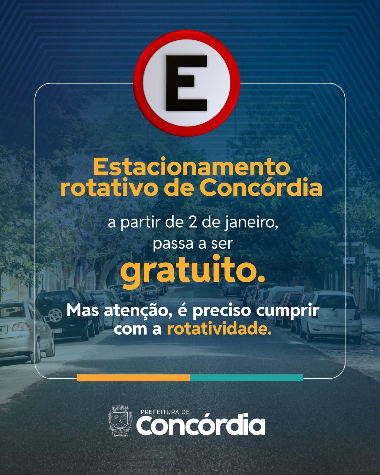 O estacionamento rotativo de Concórdia não terá mais cobrança a partir de 2 de janeiro de 2026. O motorista não terá nenhum custo para estacionar nas vagas da área central da cidade, mas é preciso estar atento, pois a regra da rotatividade precisa ser cumprida. Isso significa que o veículo poderá permanecer estacionado na mesma vaga por no máximo duas horas, sem pagar nada. Depois desse período, caso permaneça, poderá ser notificado.