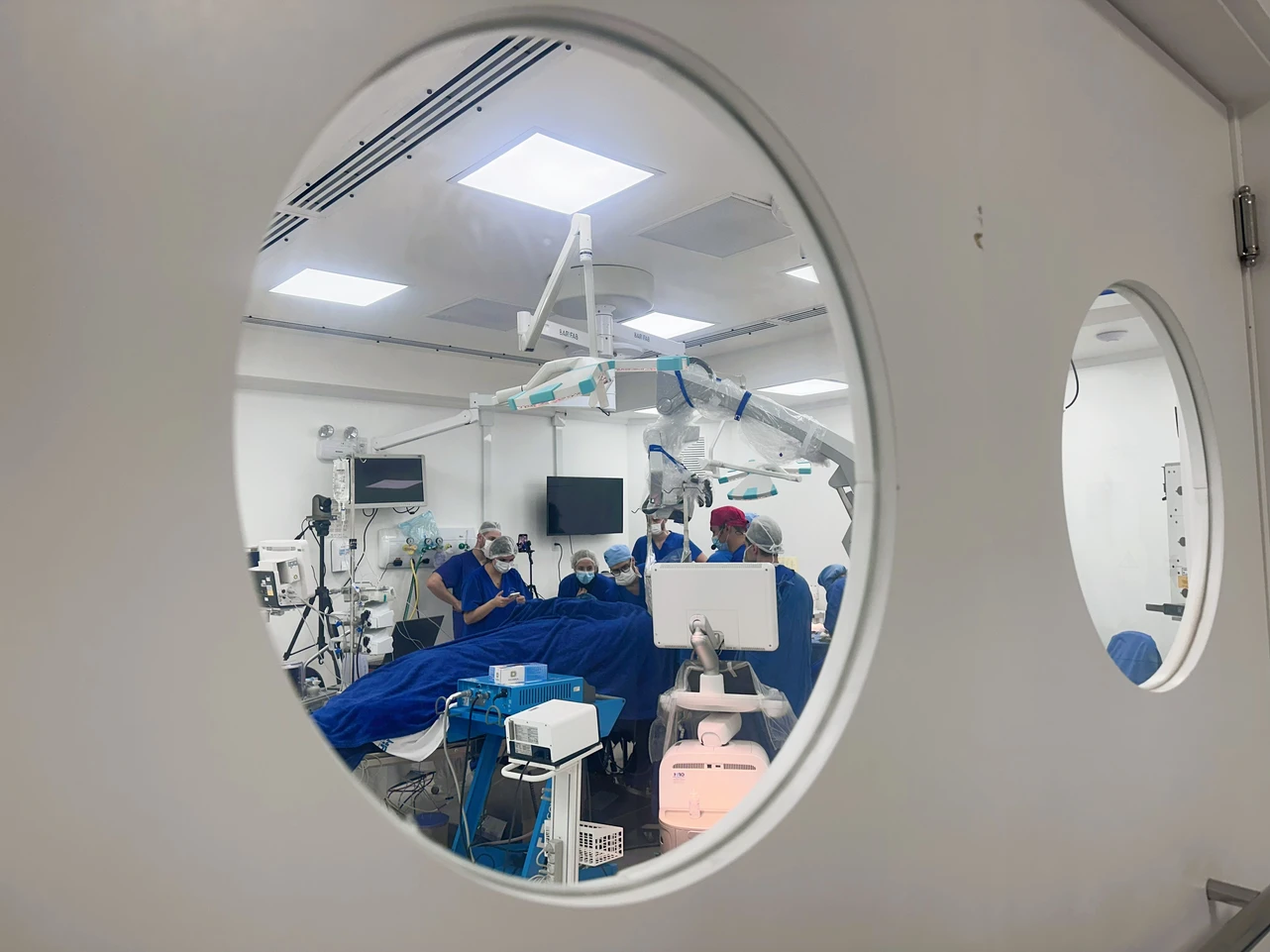Com estrutura avançada, conta com um moderno microscópio cirúrgico com tecnologia de fluorescência para delimitação precisa de tumores cerebrais. Além disso, o centro cirúrgico do HRO possui capacidade de realizar transmissão de cirurgias ao vivo em alta qualidade para fins educacionais e de aperfeiçoamento cirúrgico comparáveis aos grandes centros médicos do país e do mundo.