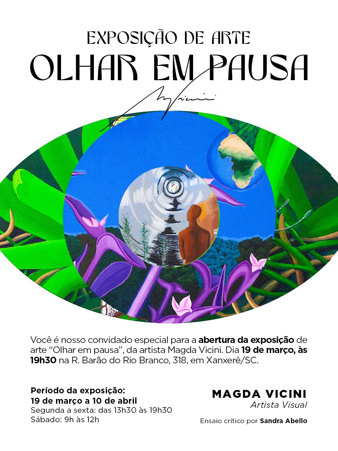 A cena cultural de Xanxerê ganha um novo destaque a partir desta semana com a abertura da exposição de arte “Olhar em Pausa”, da artista visual Magda Vicini.