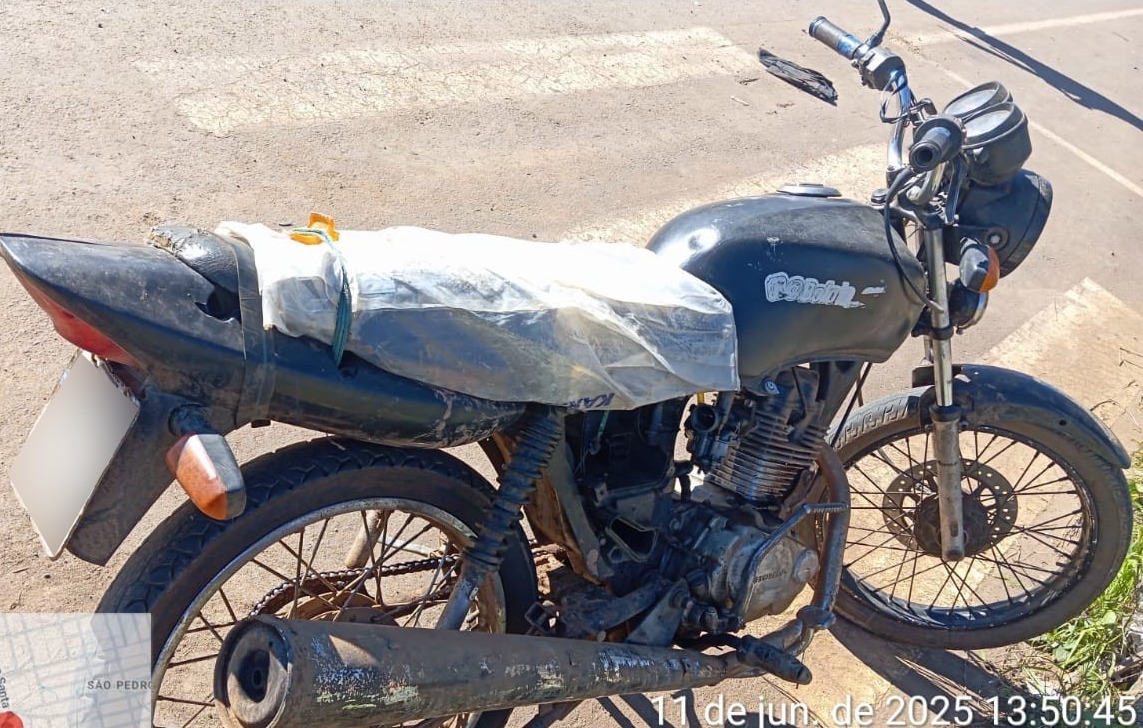Durante a verificação, os agentes constataram que a motocicleta estava com placa incompatível, chassi raspado e motor vinculado a um furto registrado em 2017. O abordado disse que o veículo teria sido deixado por um ex-funcionário da propriedade onde trabalha. Com ele foram encontrados dinheiro, uma faca e objetos pessoais.