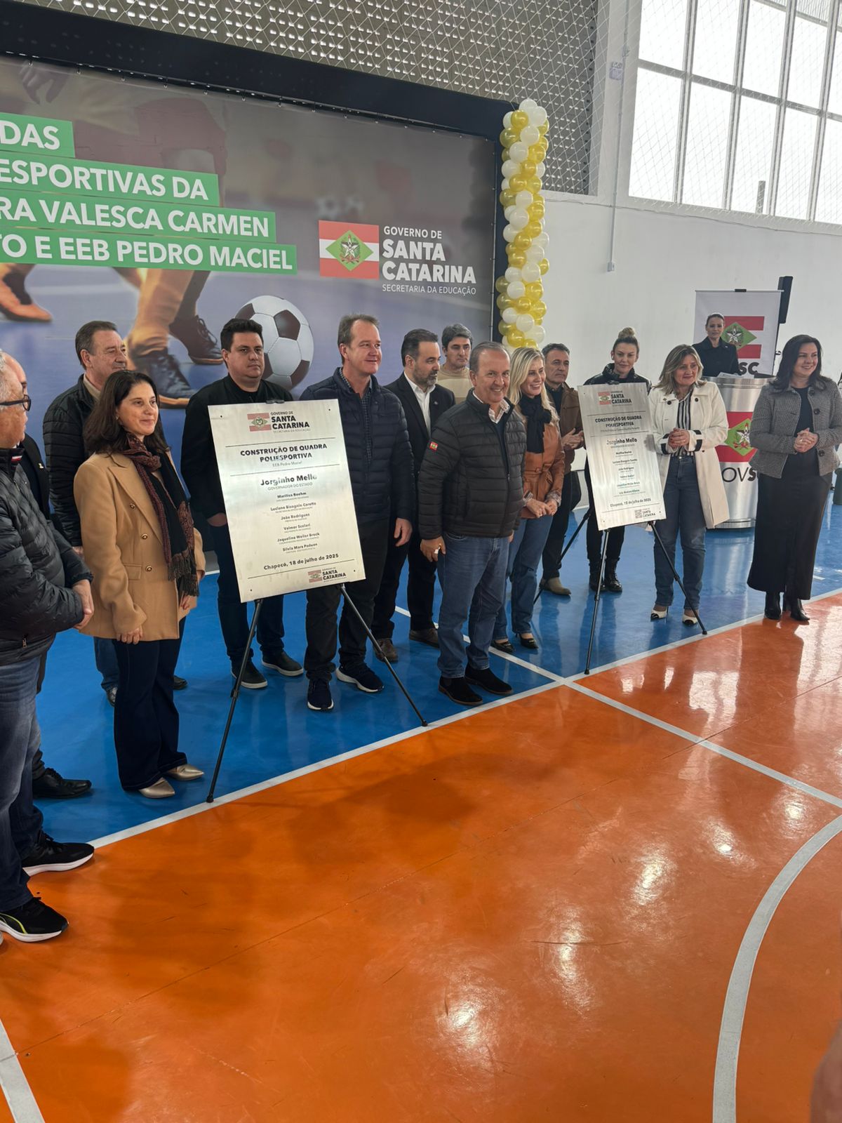 O governador de Santa Catarina, Jorginho Mello, esteve em Chapecó nesta sexta-feira, 18, para a inauguração de importantes espaços voltados ao esporte e à educação. A Escola de Educação Básica Professora Valesca Carmen Resk Parizotto foi contemplada com uma nova quadra poliesportiva coberta, entregue oficialmente durante a cerimônia.