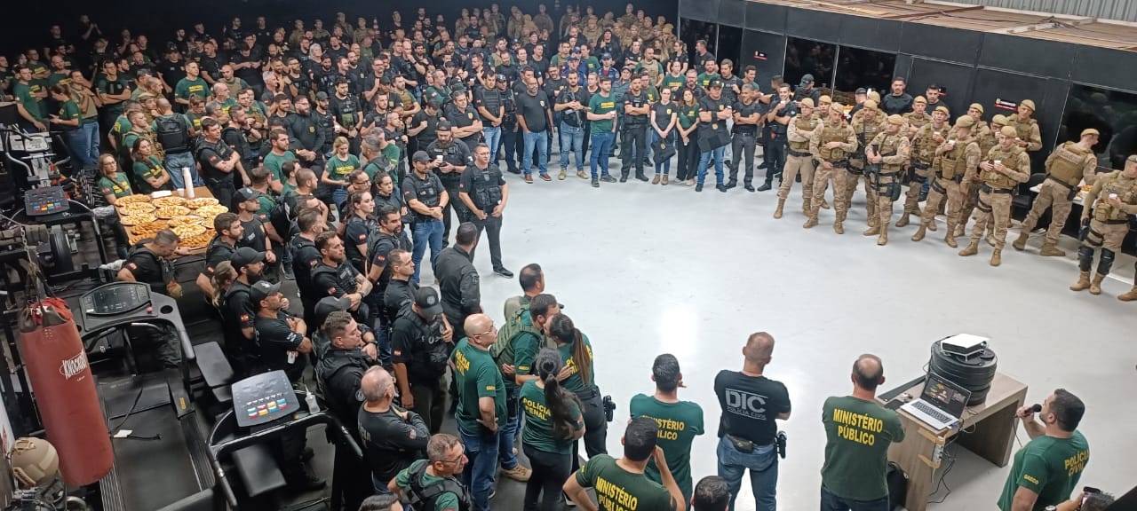 A operação mobiliza 423 agentes de segurança pública, que estão nas ruas e em unidades prisionais cumprindo as ordens judiciais. A equipe formada para o cumprimento das ordens judiciais conta com a participação de Promotores de Justiça do Ministério Público de Santa Catarina, de policiais do GAECO de Santa Catarina e do Paraná, de Policiais Civis, Militares e da Polícia Penal de Santa Catarina, de Bombeiros Militares de Santa Catarina, de Guardas Municipais de Chapecó e de Policiais Civis do Paraná e Rio Grande do Sul.