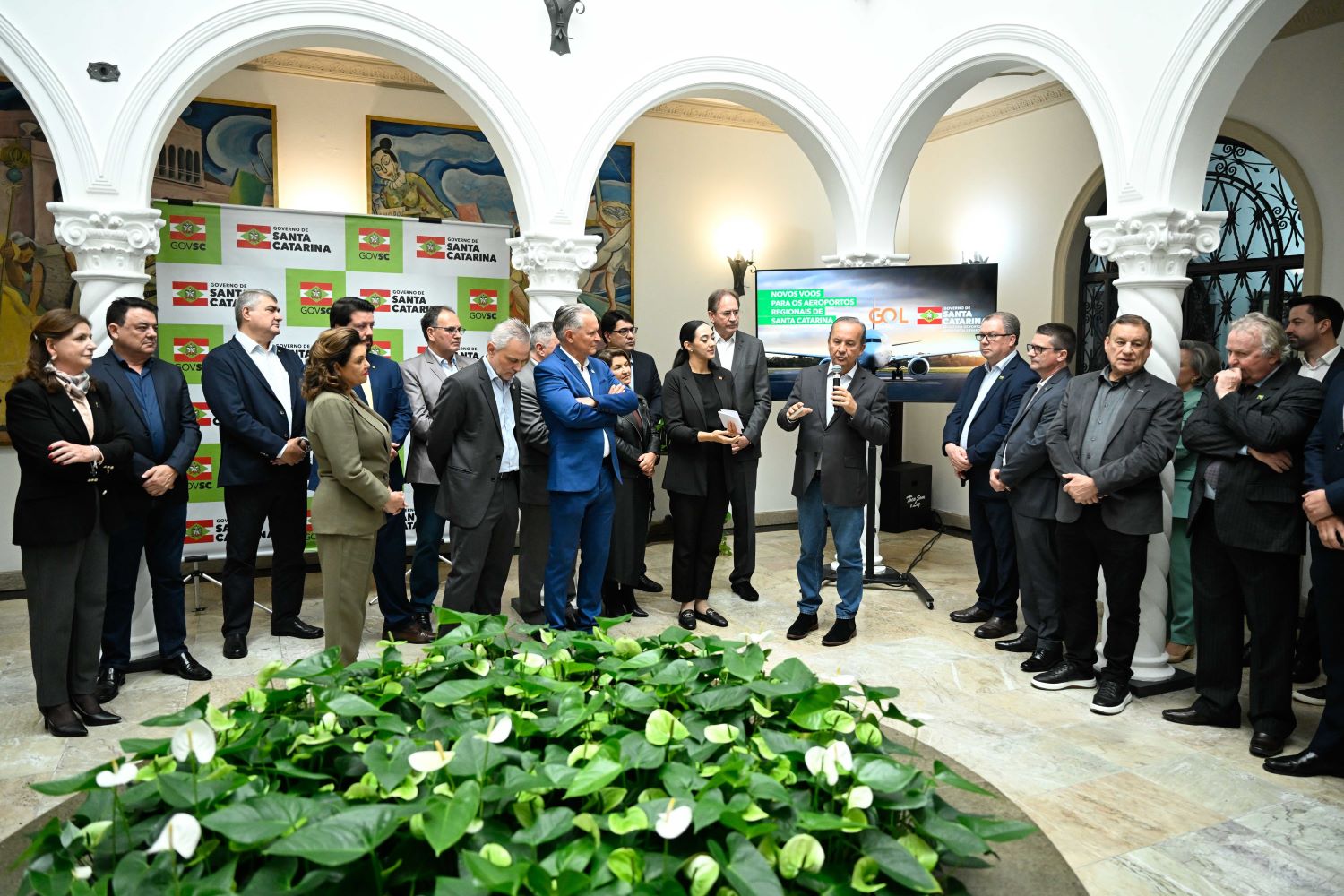 O governador Jorginho Mello anunciou nesta quinta-feira, 17, novos voos partindo de Chapecó e Correia Pinto, operados pela companhia aérea GOL. O anúncio foi feito junto à vice-governadora Marilisa Bohem e a representantes da empresa em encontro na Casa d’Agronômica. As novas operações estão previstas para começar neste segundo semestre e desta forma a GOL passará a atuar em cinco aeroportos do estado.