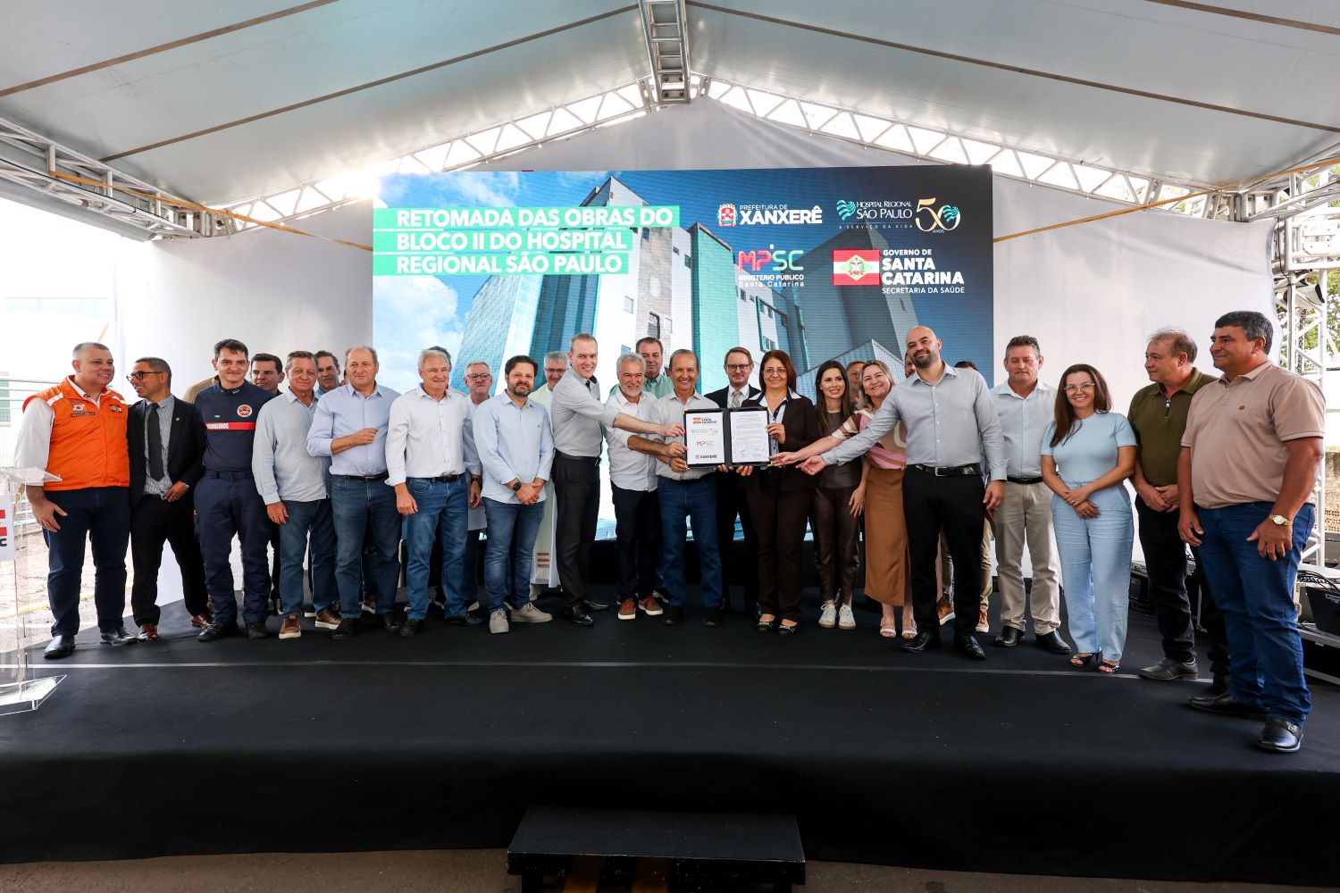 O Governo de Santa Catarina anunciou a retomada das obras do Bloco II do Hospital Regional São Paulo (HRSP), em Xanxerê, no Oeste catarinense. A unidade, contratualizada com a Secretaria de Estado da Saúde, recebe cerca de R$ 8,2 milhões mensais para manutenção das atividades e atende aproximadamente 98% dos pacientes pelo Sistema Único de Saúde (SUS). A retomada encerra uma paralisação iniciada em 2022 por questões jurídicas e resulta de articulação entre o Estado, Ministério Público de Santa Catarina, Prefeitura de Xanxerê e direção do hospital.