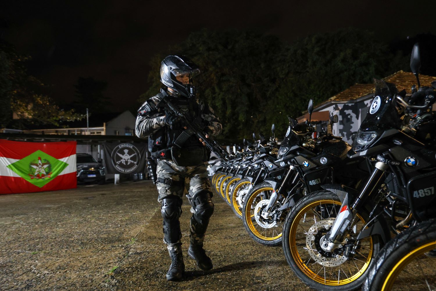 O governador Jorginho Mello entregou na quarta-feira, 21, dez novas viaturas ao Batalhão de Polícia de Choque (BPChoque) da Polícia Militar de Santa Catarina (PMSC). Os veículos, do tipo motocicleta BMW F900, foram adquiridas no valor total de R$ 950 mil.