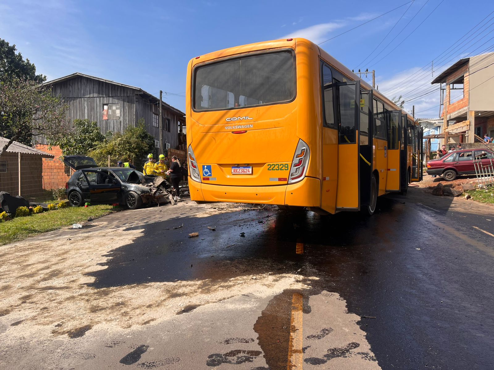 De acordo com informações da equipe da Rádio Chapecó FM 100.1 – que esteve no local – o acidente envolveu um ônibus do transporte coletivo e um veículo de passeio. Uma grande quantidade de combustível que acabou vazando do ônibus foi constada no local.