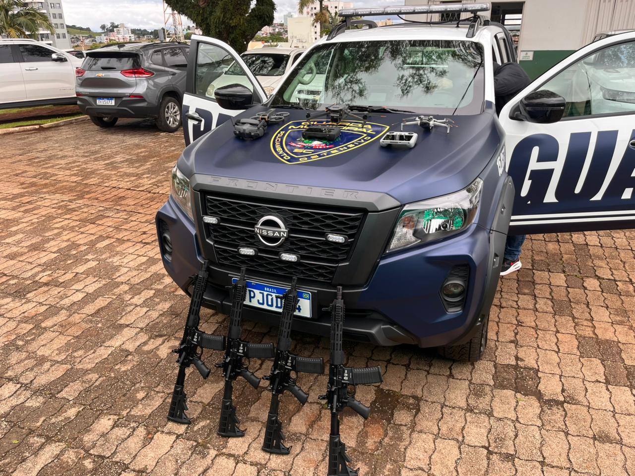 A Prefeitura de Chapecó está investindo forte em segurança e nesta quarta-feira (29) realizou mais uma entrega de equipamentos e veículos para a Guarda Municipal, totalizando R$ 390 mil em investimentos. Foram entregues uma picape Nissan Frontier 4×4 blindada, quatro fuzis T4 556 e três drones. Os drones, somando R$ 61 mil, foram adquiridos com recursos do Ministério da Justiça. O restante dos recursos foram da Prefeitura.