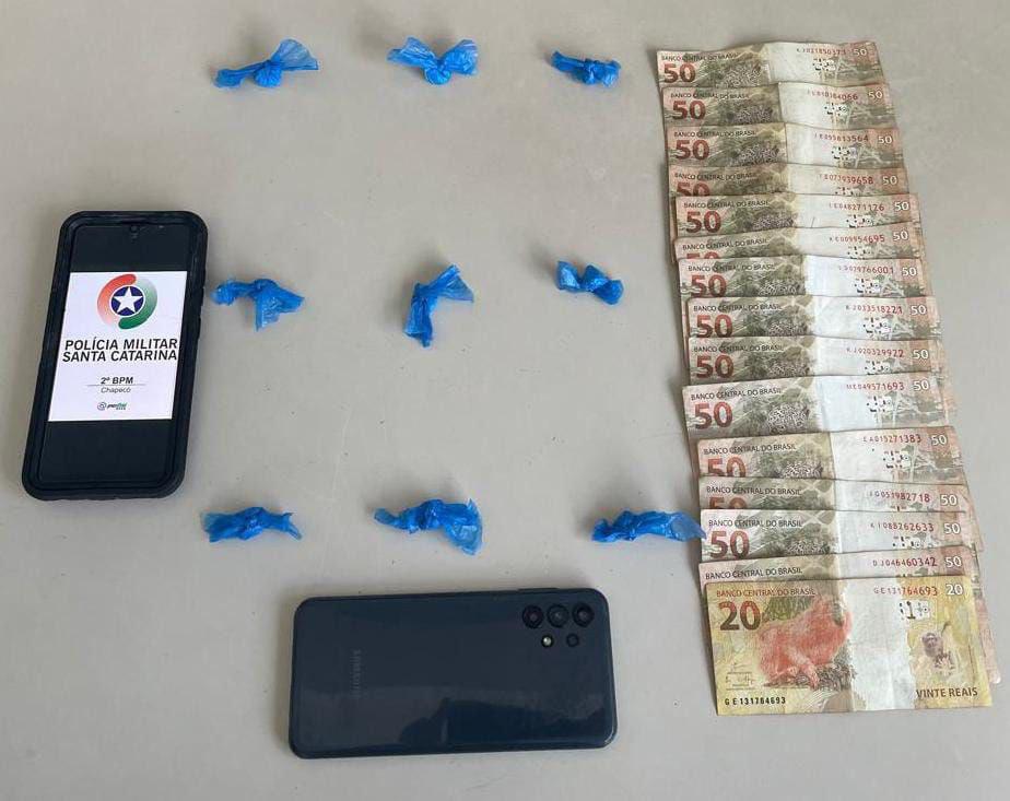 Na revista pessoal, foram encontrados R$ 720,00 em dinheiro e um celular. Questionado, ele afirmou que estava apenas descansando no local, que o dinheiro era de seu trabalho e que o telefone não lhe pertencia. No entanto, após buscas no ponto onde ele estava sentado, os policiais localizaram nove porções de cocaína. Confrontado com a descoberta, o homem confessou que a droga era sua e que estava traficando na região.