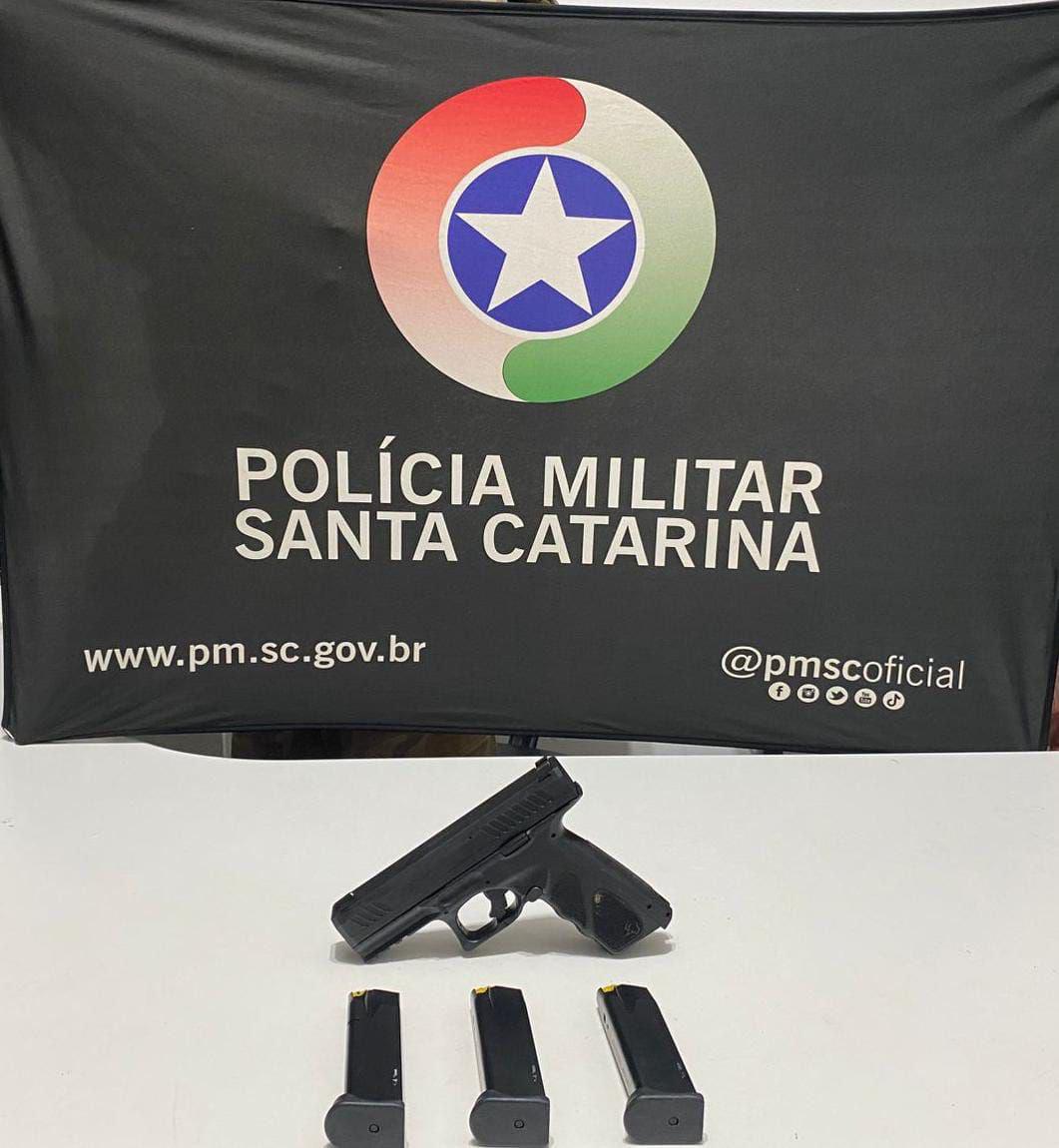 No local, os policiais fizeram contato com o responsável pela residência e pela festa, o qual confirmou ter realizado os disparos. Ele apresentou uma pistola calibre 9 mm, devidamente registrada, e assumiu ser o autor dos tiros.