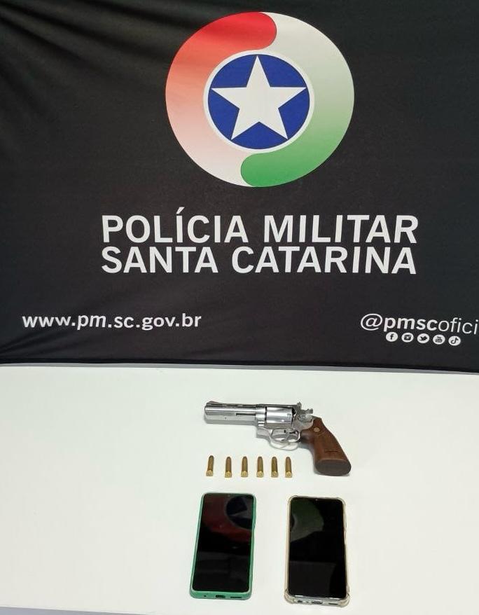 O suspeito assumiu ser o proprietário da arma e informou não ter registro, alegando que portava o armamento para sua própria segurança. Dois celulares também foram apreendidos.
