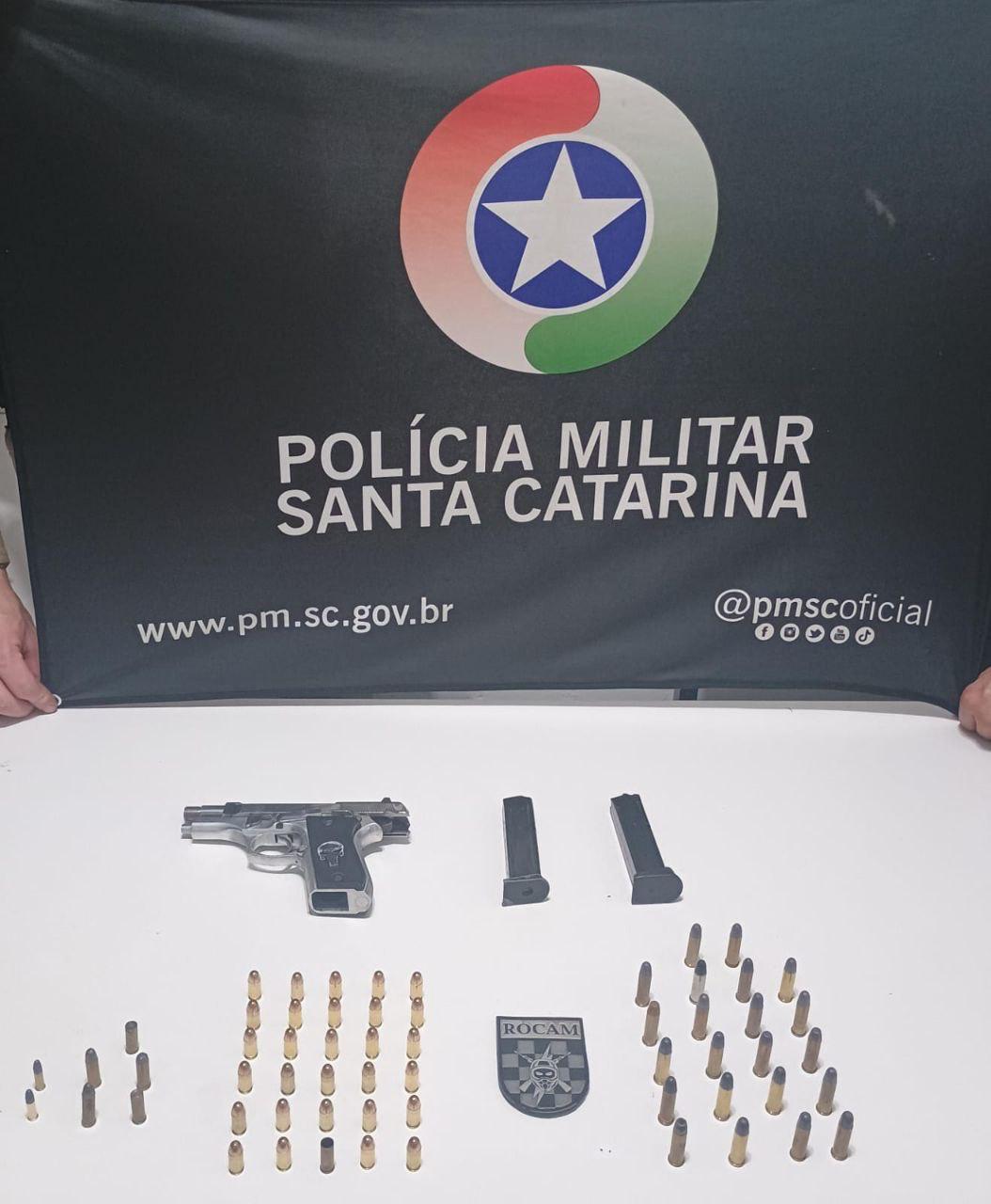 Uma ocorrência de posse e porte irregular de arma de fogo mobilizou a Polícia Militar na comunidade Sede Figueira, interior de Chapecó. A guarnição do Motopatrulhamento Tático (Rocam) realizava rondas quando foi acionada para verificar uma denúncia de disparo de arma de fogo. O caso foi registrado no final da tarde de domingo (05)