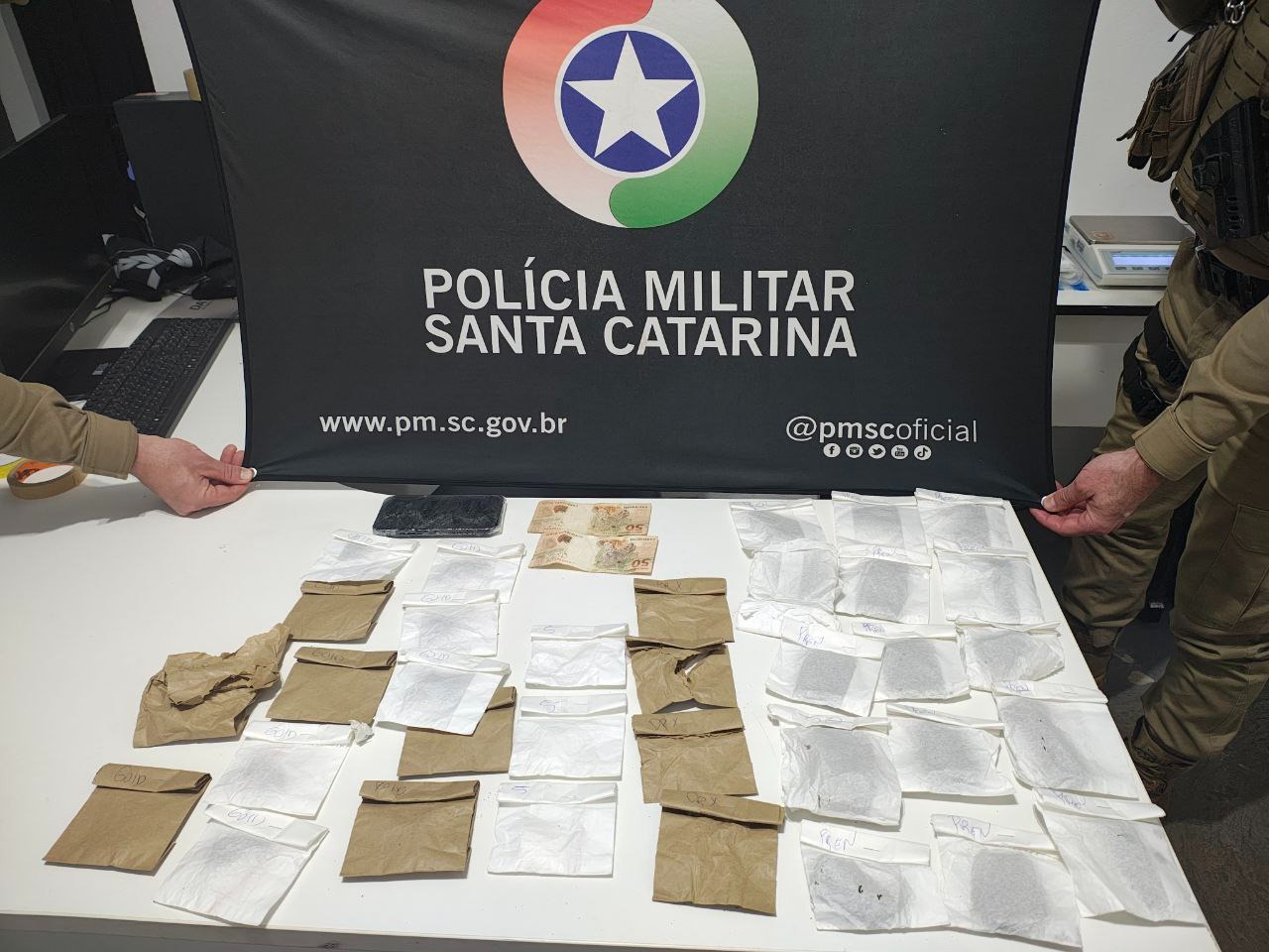 Na tarde desta quinta-feira (04), a Polícia Militar de Santa Catarina (PMSC), por meio do 2º Batalhão de Polícia Militar de Fronteira (2ºBPM/Fron), abordou um homem de 27 anos suspeito de tráfico de drogas em Chapecó.