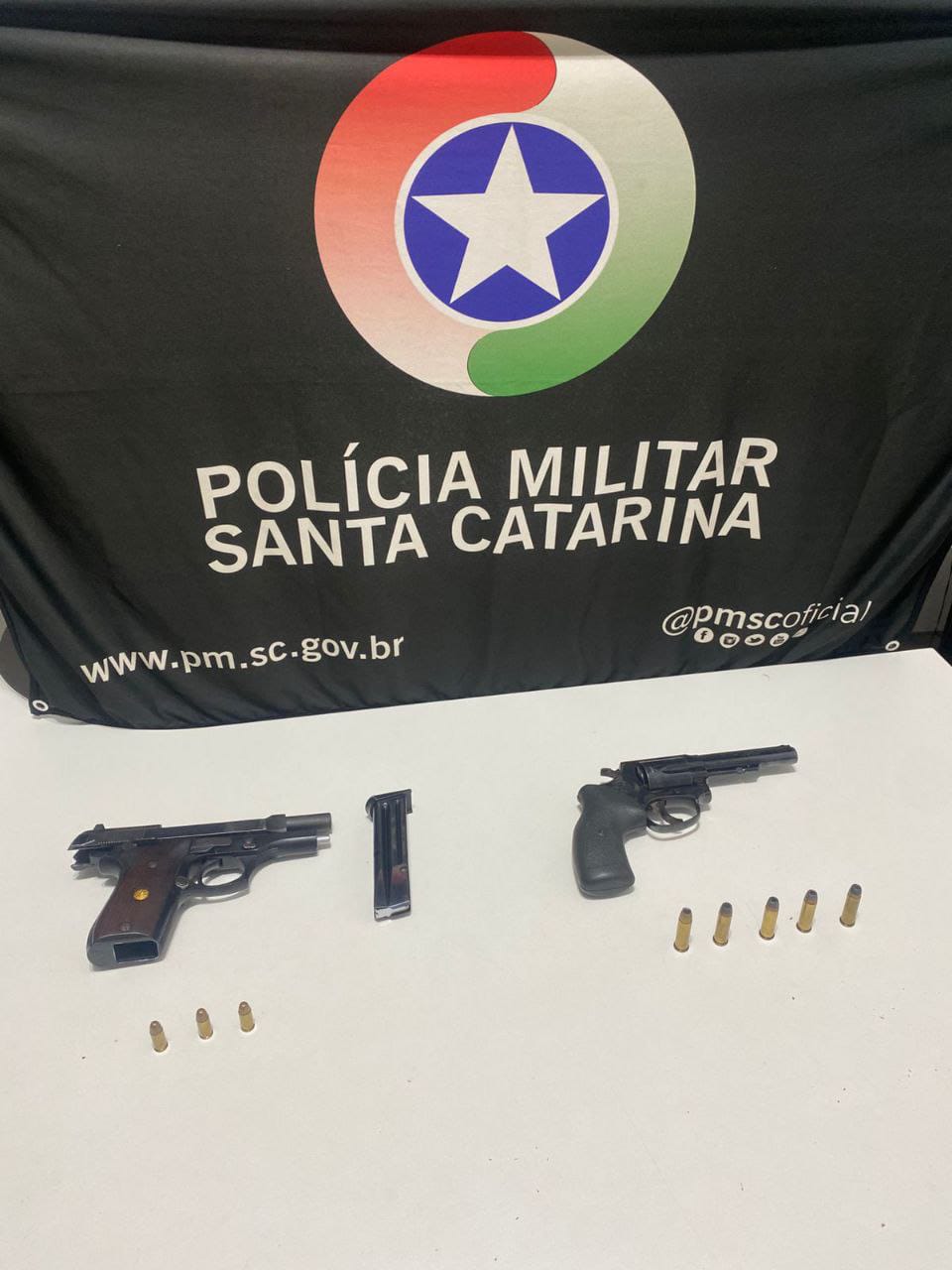 A Polícia Militar apreendeu duas armas de fogo na manhã desta quinta-feira (02) em uma residência localizada no distrito de Marechal Bormann, em Chapecó. A ação foi realizada pela guarnição do Tático do 2° BPM/Fron, após o recebimento de uma denúncia.
