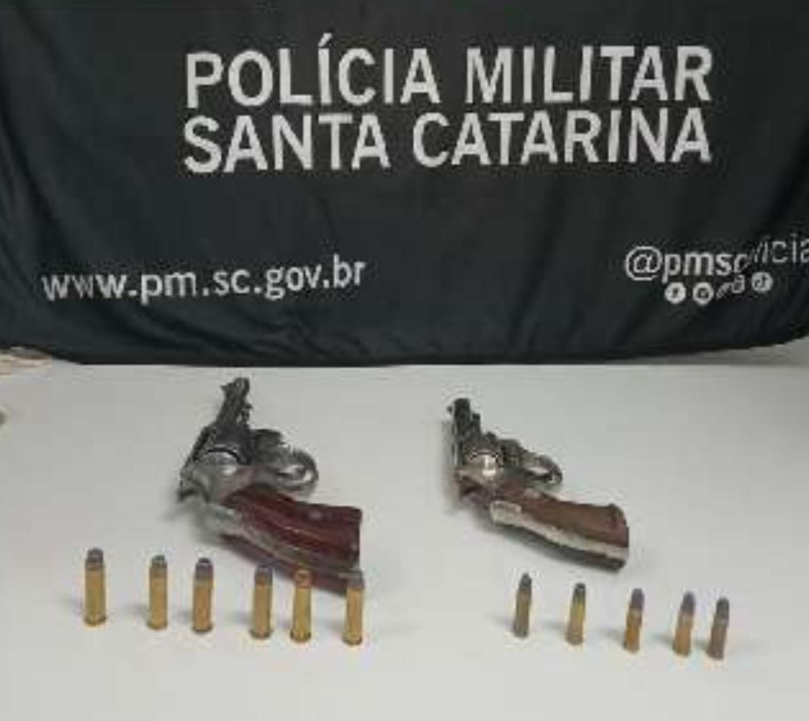 Ao chegar ao local, a guarnição constatou som alto e grande aglomeração de pessoas. Durante a abordagem de todos os presentes, um dos homens abordados foi encontrado portando dois revólveres: um calibre 38, com seis munições intactas, e outro calibre 32, com cinco munições intactas.