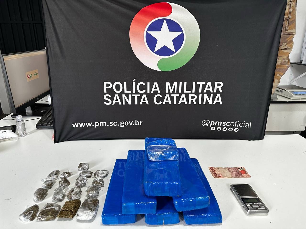 No total, foram apreendidos aproximadamente 4,7 quilos de maconha, além de uma balança de precisão e uma quantia de R$ 10,00 em espécie. O material indica que o entorpecente seria destinado à comercialização na região.