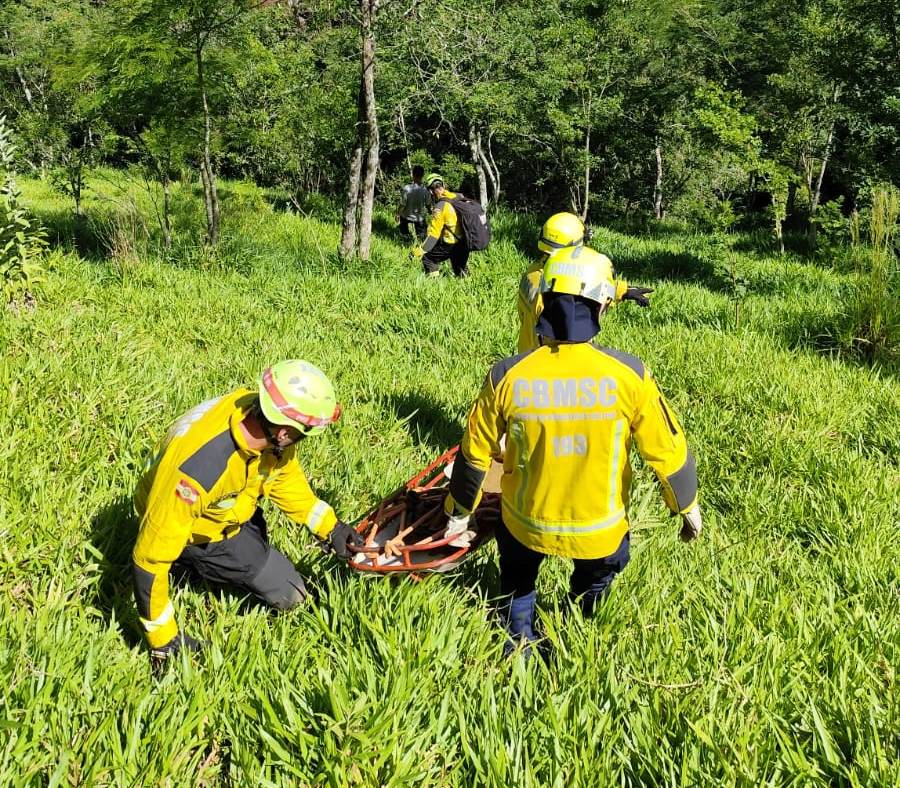 O Corpo de Bombeiros foi acionado pouco antes das 7 horas e encontrou a vítima em uma área de difícil acesso, a aproximadamente 2,3 quilômetros da estrada principal.