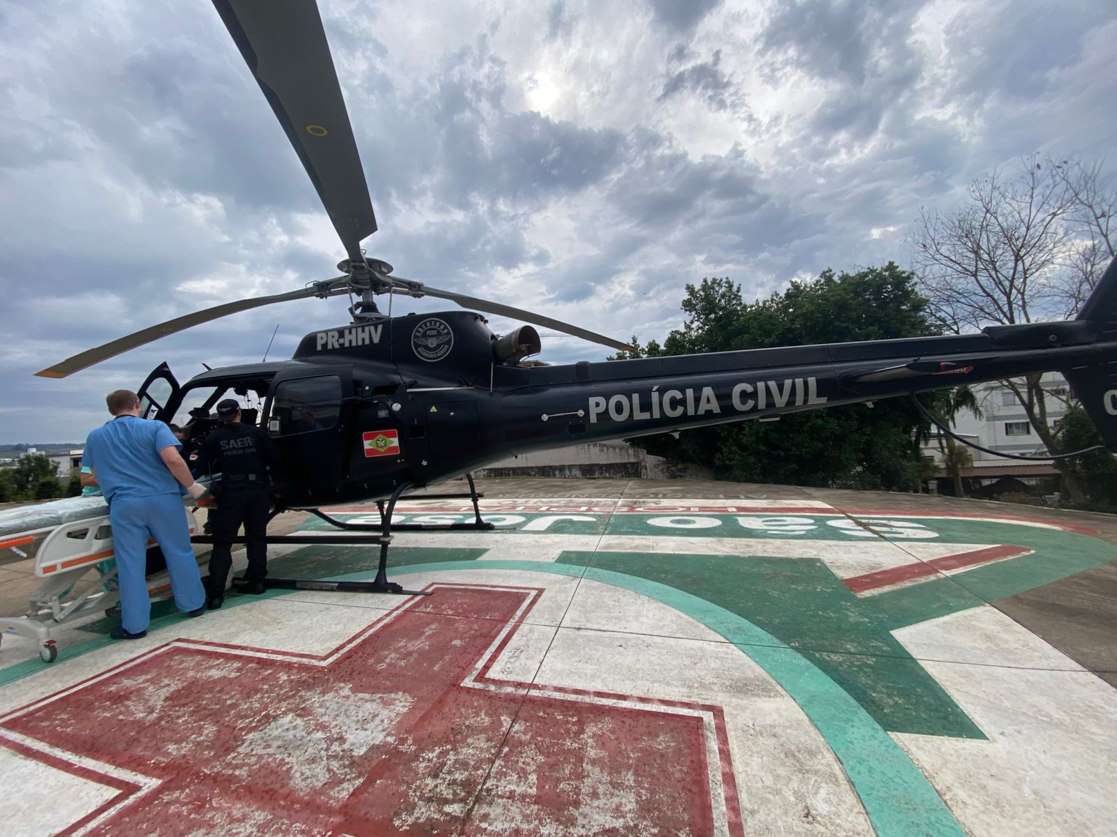 Na tarde deste sábado (26), a aeronave da Polícia Civil, tripulada pelos policiais do SAER-Fron e pelos profissionais do SAMU/Aeromédico, foi acionada para realizar transferência aeromédica.