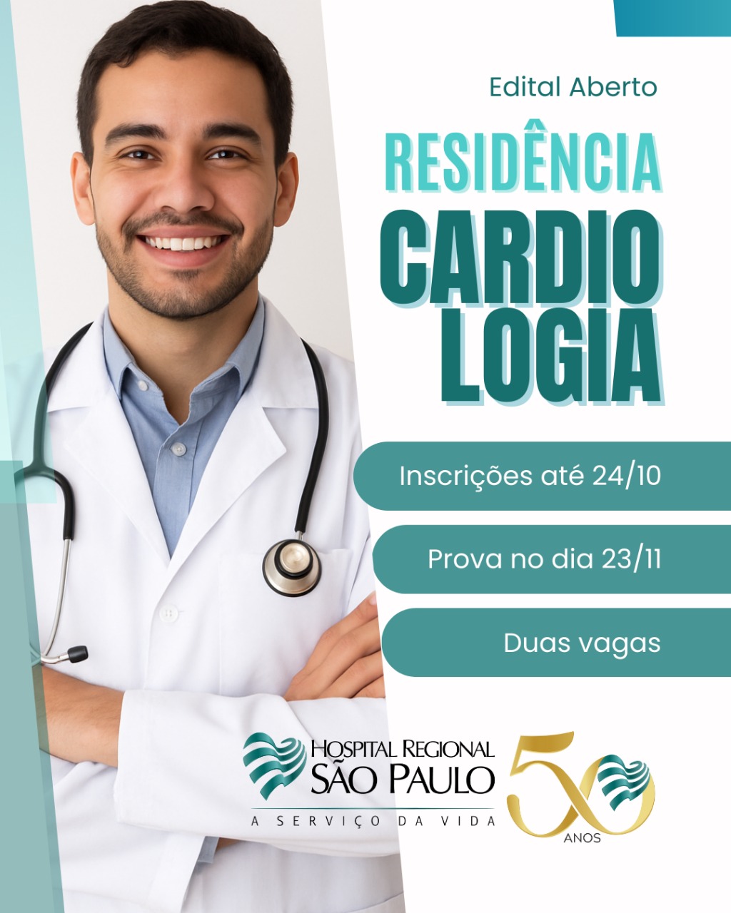 O Hospital Regional São Paulo (HRSP), de Xanxerê, divulgou o Edital nº RM 01/2026, anunciando a abertura das inscrições para o Programa de Residência Médica em Cardiologia. São oferecidas duas vagas credenciadas pelo Ministério da Educação (MEC), com bolsas garantidas, destinadas a médicos interessados em atuar em uma instituição referência em alta complexidade na região Oeste de Santa Catarina.
