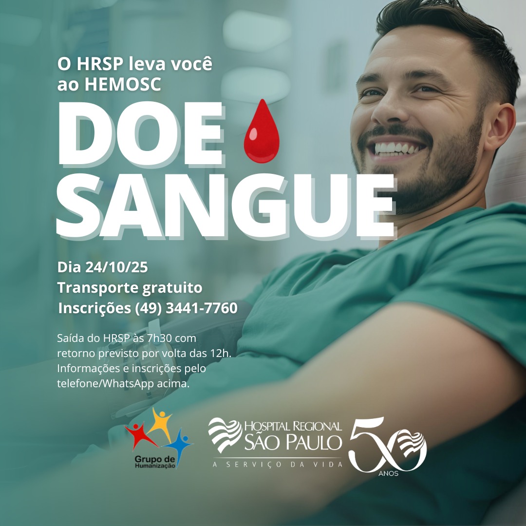 O Hospital Regional São Paulo (HRSP), por meio do Grupo de Humanização e da Agência Transfusional, realizará no próximo dia 24 de outubro mais uma ação de incentivo à solidariedade.