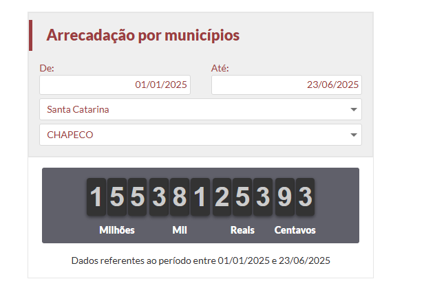Chapecó já contribuiu com mais de R$ 155 milhões em impostos apenas em 2025, segundo dados atualizados do Impostômetro, ferramenta que calcula em tempo real a arrecadação tributária no país. O valor se refere ao período entre 1º de janeiro e 23 de junho de 2025.