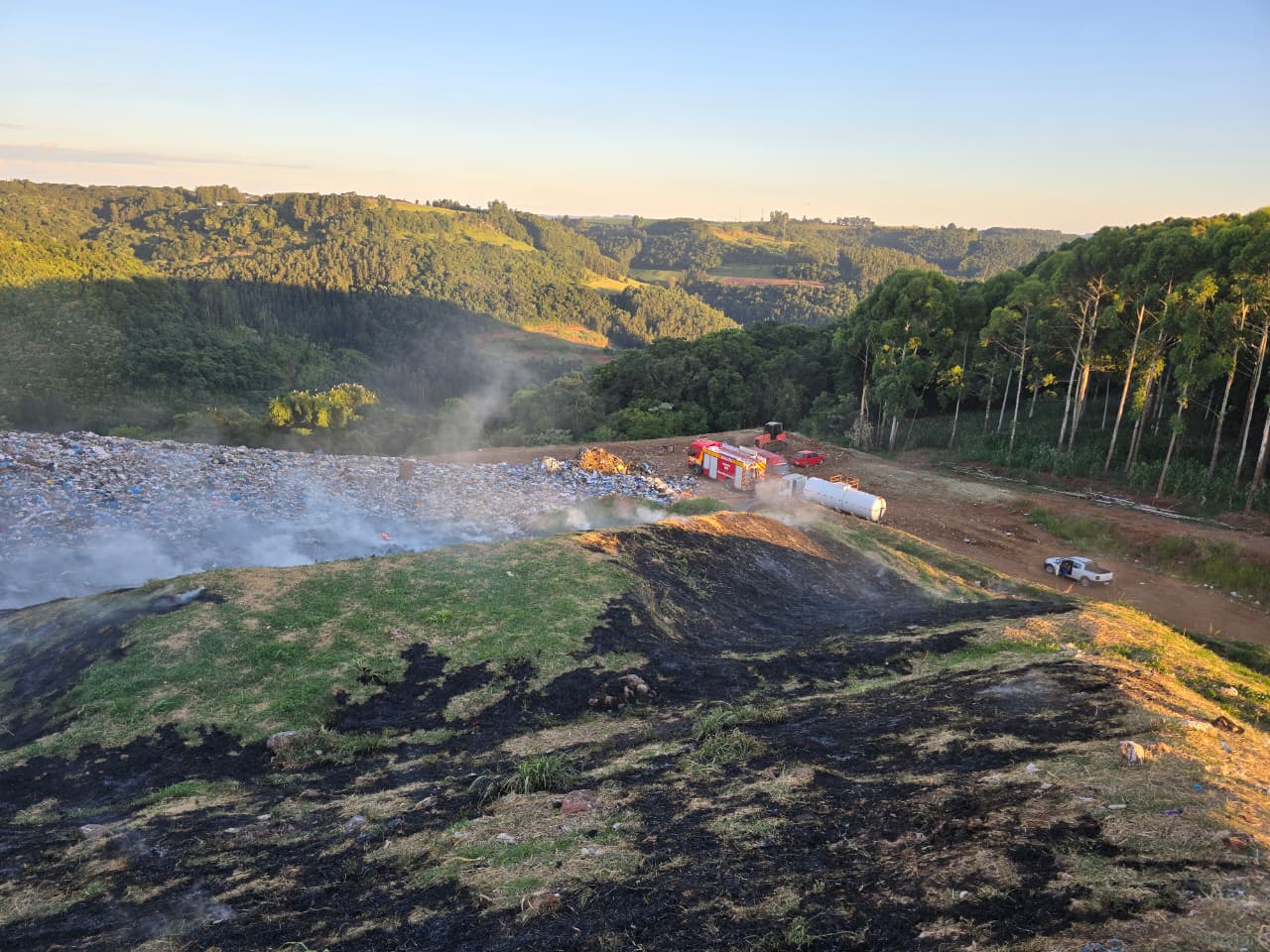 Um incêndio em um aterro sanitário mobilizou o Corpo de Bombeiros Militar na tarde de domingo (25), na Linha Pedro Guerreiro, no interior de Xaxim. A ocorrência foi registrada por volta das 17h.