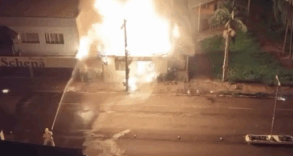 Um incêndio de grandes proporções destruiu uma edificação multifamiliar na noite de domingo (11), na Avenida Brasil, em Palmitos, no Oeste de Santa Catarina. A ocorrência foi atendida pelo Corpo de Bombeiros Militar, por meio da guarnição do quartel de Palmitos, vinculada ao 6º Batalhão.