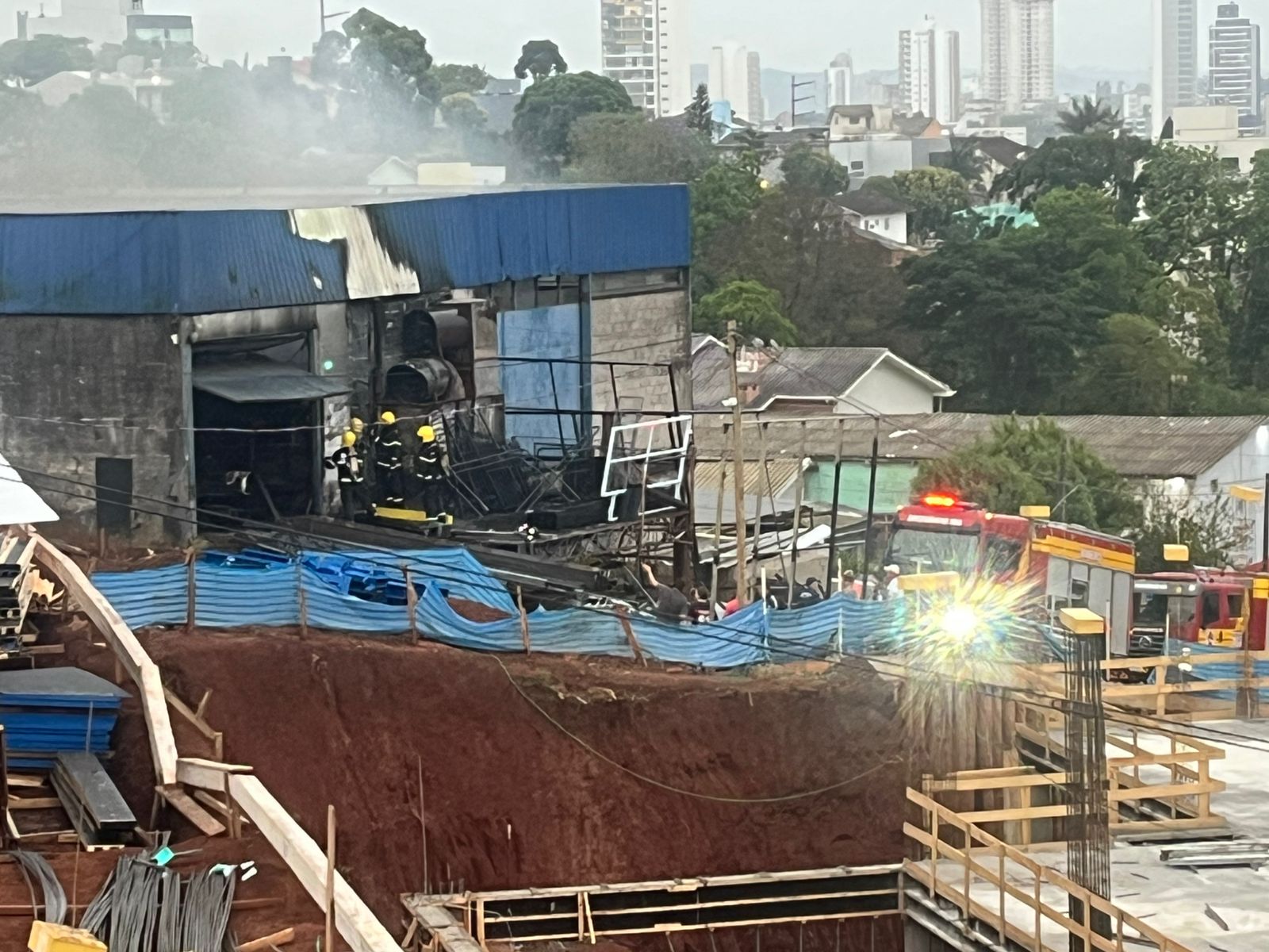 Um incêndio de grandes proporções atingiu na tarde deste sábado (01) uma metalúrgica especializada em esquadrias de ferro, em Chapecó. A edificação, de dois pavimentos e cerca de 500 metros quadrados, foi parcialmente destruída pelas chamas, que se concentraram na ala Leste do prédio, onde funcionava a sala de pintura. O teto dessa área acabou desabando em razão do calor intenso.