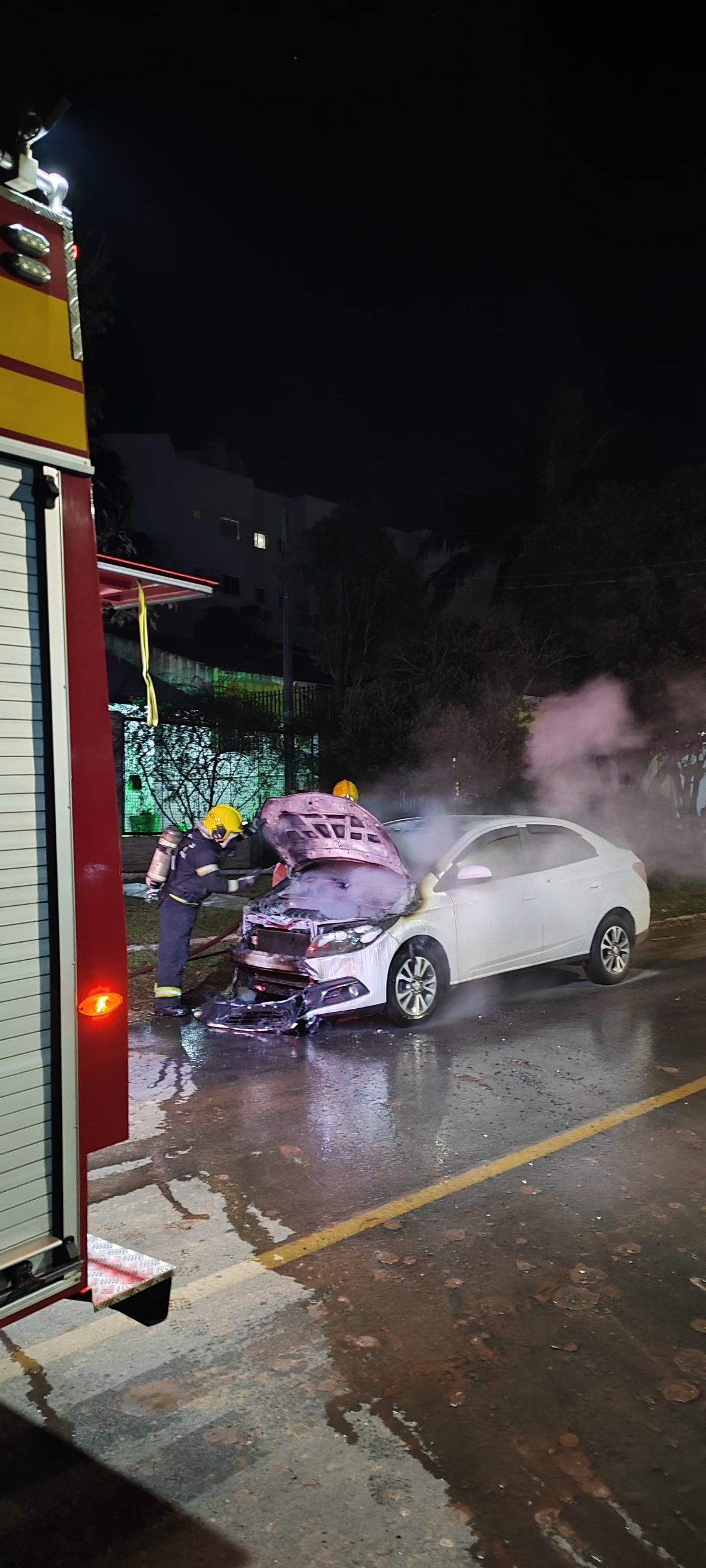 Um incêndio em um automóvel mobilizou equipes do Corpo de Bombeiros na noite desta segunda-feira (21) em Chapecó. O caso foi registrado por volta das 21h11min na rua Barão do Rio Branco, no bairro Maria Goretti.