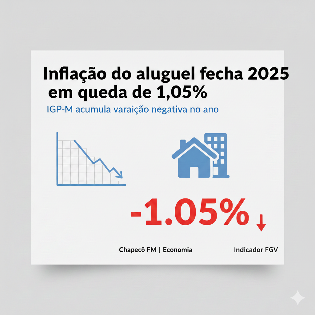 “O IGP-M encerra 2025 com queda acumulada de 1,05%, resultado que reflete um ano marcado pela desaceleração da atividade global e elevada incerteza. Esses fatores limitaram repasses de custos, impactando, principalmente, os preços ao produtor. Além disso, a melhora das safras agrícolas contribuiu para aliviar preços de matérias-primas, reforçando o movimento de deflação no índice”, destaca Matheus Dias na nota.