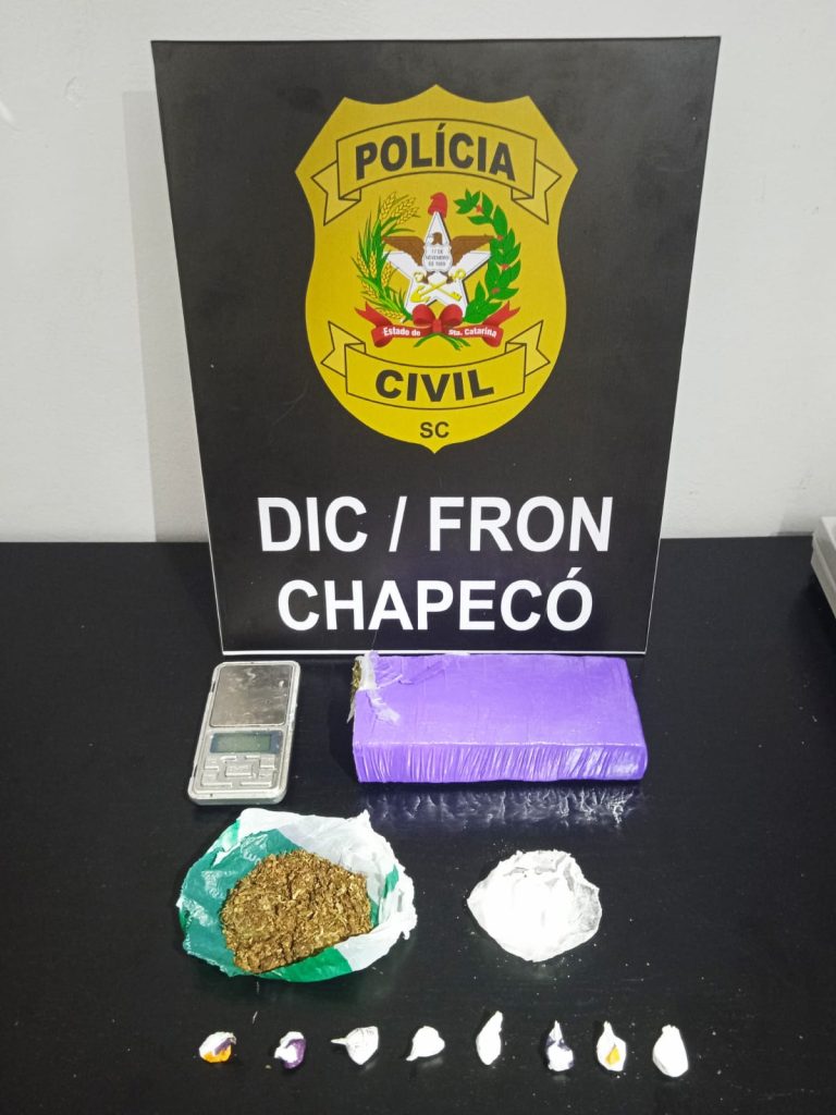 Um jovem de 19 anos foi preso pela Polícia Civil na tarde desta terça-feira (15), no bairro Saic, em Chapecó, durante uma operação contra o tráfico de drogas. A ação foi comandada pela Delegacia de Combate às Drogas (DECOD), ligada ao Departamento de Investigações Criminais (DIC), os policiais deram o cumprimento ao mandado de busca e apreensão na residência do suspeito. A ordem judicial foi expedida pela Vara Regional de Garantias da Comarca de Chapecó.