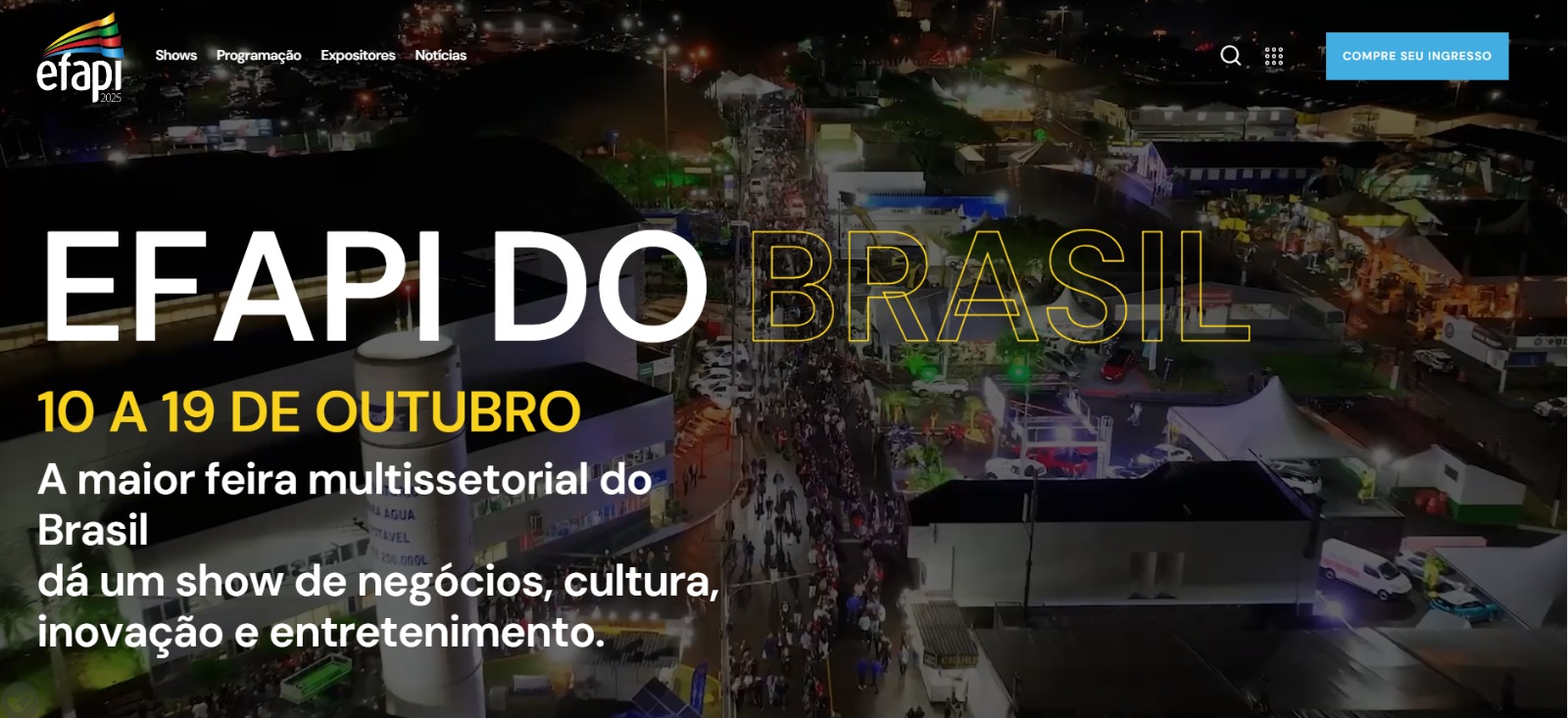 Está no ar o site da Efapi do Brasil, que será realizada de 10 a 19 de outubro de 2025, no Parque de Exposições Dr. Valmor Ernesto Lunardi, em Chapecó. No link www.efapidobrasil.com.br é possível conferir a programação de shows, comprar ingresso, ver os expositores e ficar por dentro das notícias e os números da Exposição Feira Agropecuária, Comercial e Industrial de Chapecó.