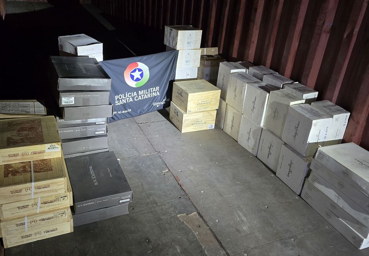 Mais de 400 garrafas de vinho argentino foram apreendidas na noite desta segunda-feira, dia 9, dentro de um caminhão, na BR-282 próximo do trevo de Iraceminha, no Extremo-Oeste catarinense.