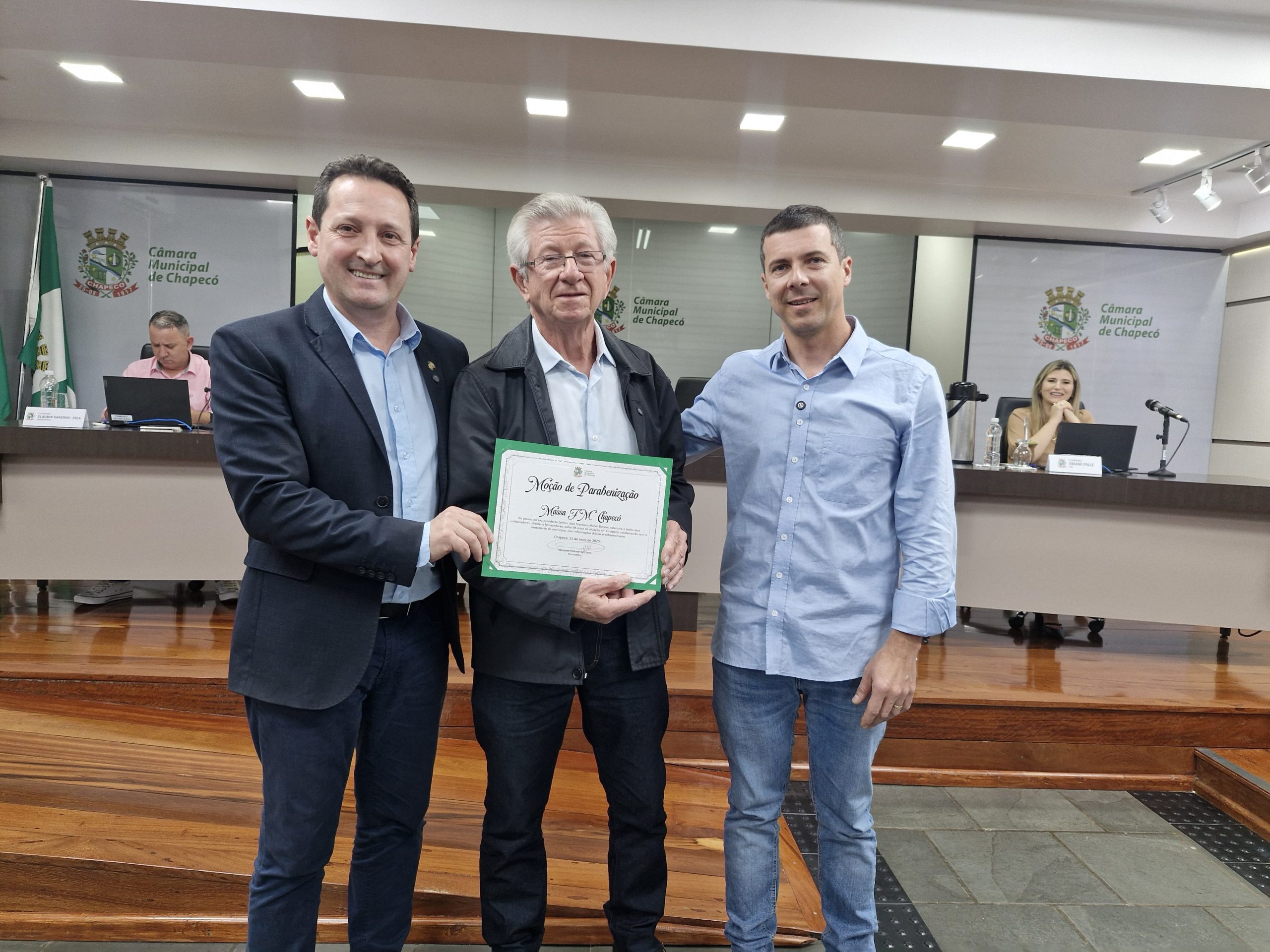 A Massa FM, emissora do Grupo Chapecó de Comunicação, foi homenageada na tarde desta quarta-feira (24) durante sessão da Câmara de Vereadores de Chapecó. Na ocasião, foi entregue uma Moção de Parabenização pelos seis anos de atuação na comunidade local.