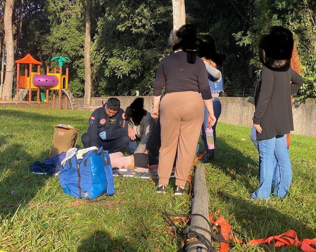 Uma criança de sete anos foi atingida por parte de uma estrutura enquanto brincava no parque da Escola Básica Municipal Alexandre Cella, localizada na Colônia Cella, interior de Chapecó, na manhã desta quinta-feira (16).