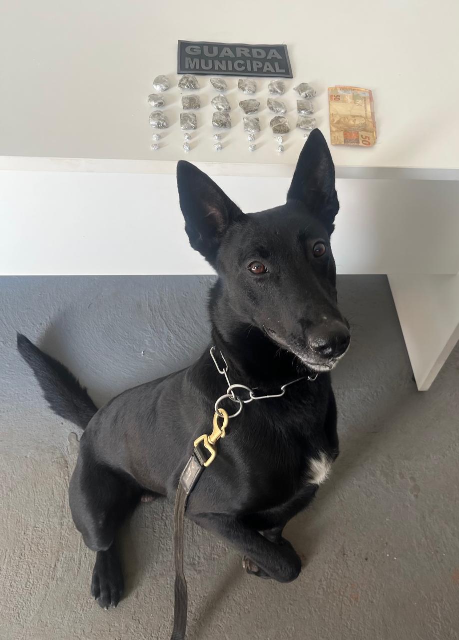 Ao ser questionado, o menor confirmou que havia arremessado drogas, mas se recusou a informar o local exato ou o tipo de substância. Diante disso, foi acionado o apoio do canil da Guarda Municipal. Com o auxílio do cão farejador Apollo, foram localizadas 18 porções de substância semelhante à maconha e 11 porções aparentando ser crack.