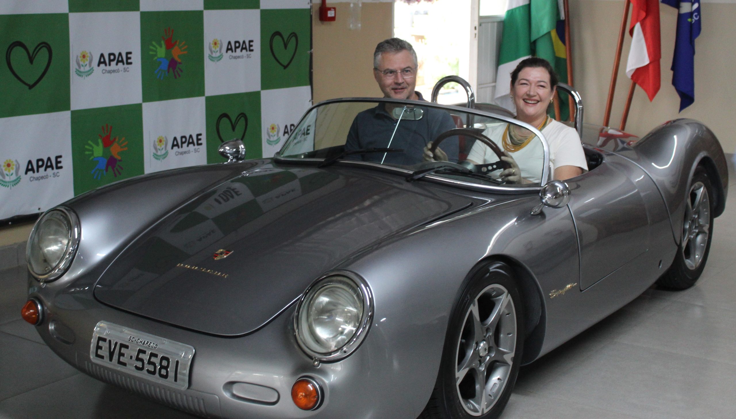 A Associação de Pais e Amigos dos Excepcionais de Chapecó (Apae) fez a entrega, no início da manhã desta segunda-feira, 23 de fevereiro, da réplica do Porsche 1995, modelo 550 Spyder, sorteado em campanha promocional incluída na programação de seus 55 anos. A ganhadora foi a Jane Terezinha Lennert Ramme, moradora de Jaraguá do Sul, que estava acompanhada pelo esposo Jackson.