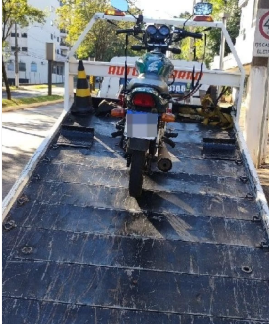 O veículo, uma Honda/CG 125 Titan verde, acumulava mais de 150 autuações de trânsito. Durante a abordagem, os agentes também constataram que o condutor não possuía Carteira Nacional de Habilitação (CNH).