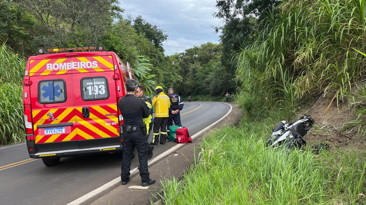 Um motociclista de 30 anos foi socorrido de helicóptero após sair da pista e cair de moto na tarde deste sábado, dia 11, por volta das 16 horas, na SC-157, entre Quilombo e Coronel Freitas, no Oeste catarinense.