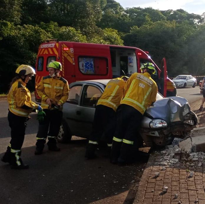 No local, os bombeiros encontraram um veículo GM/Corsa que havia colidido contra um poste de energia elétrica. O condutor, um homem de 32 anos, estava no interior do veículo e apresentava suspeita de fratura de fêmur e trauma cranioencefálico.